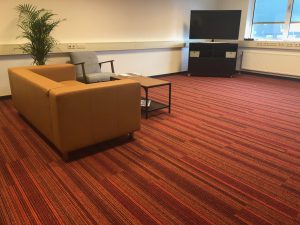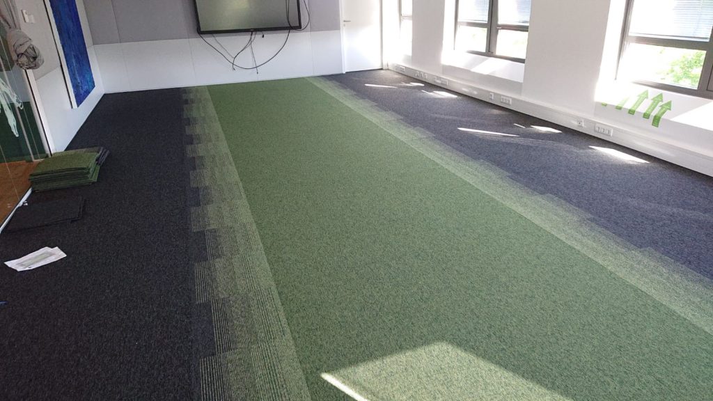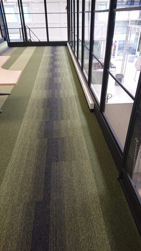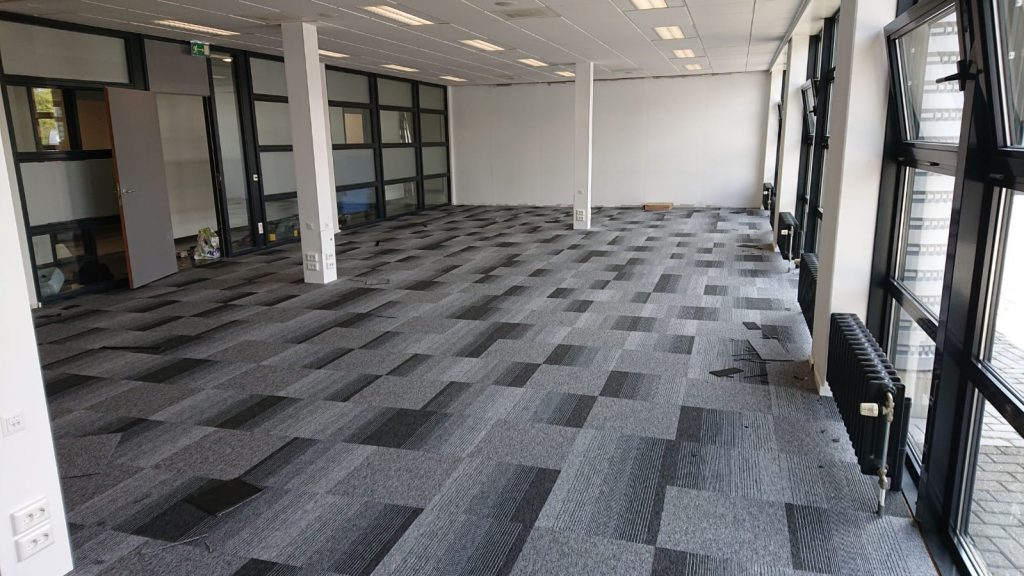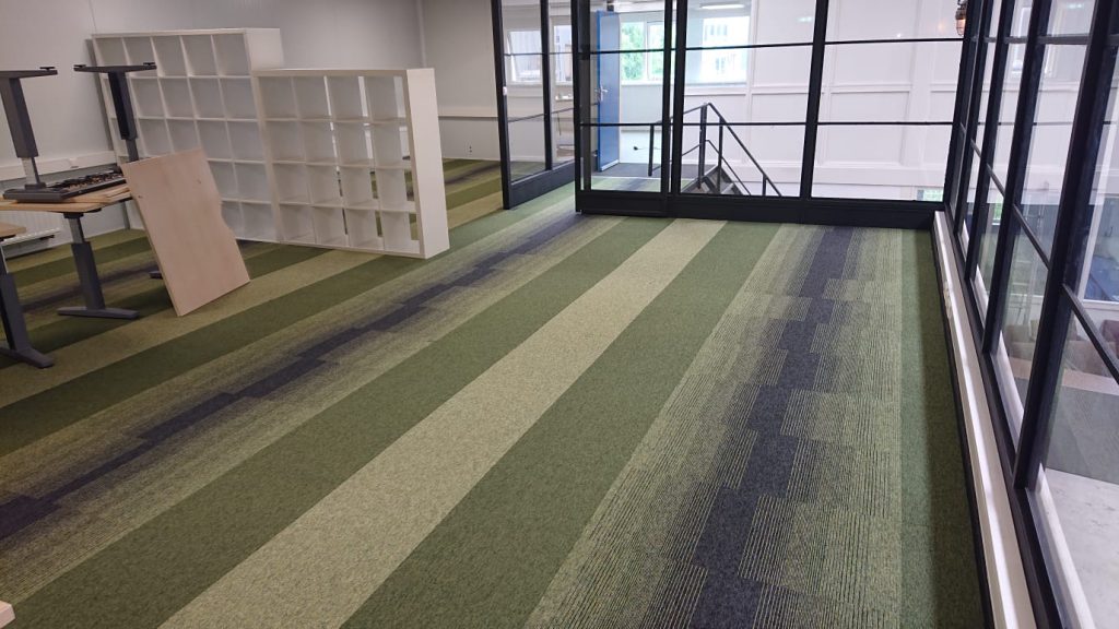 In het kantoor van Redwise in Bunschoten stoffeerden wij 400 m2 tapijttegels.